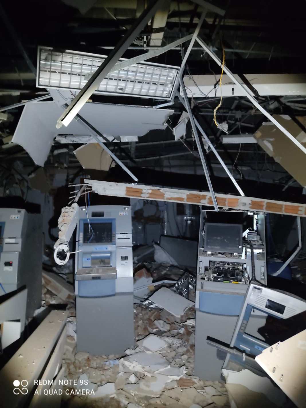 Com a explosão, a agência bancária ficou destruída.