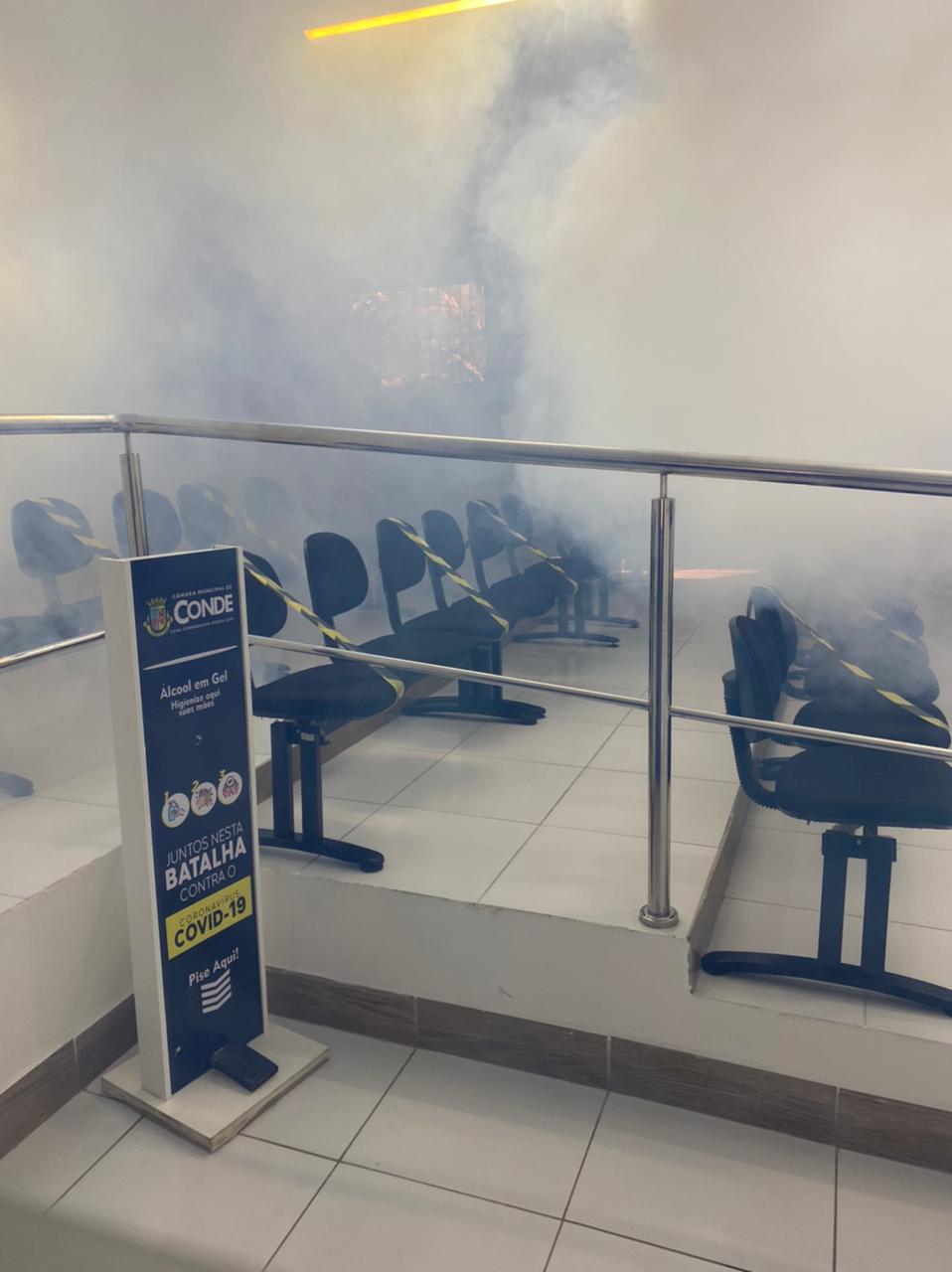 Para intensificar o combate e prevenção à Covid-19 e garantir mais segurança, o prédio da Câmara Municipal de Conde passou por um trabalho de desinfecção de todo o espaço físico das dependências do Legislativo na manhã de sexta-feira (11), como medida de prevenção à infecção pelo Coronavírus.
