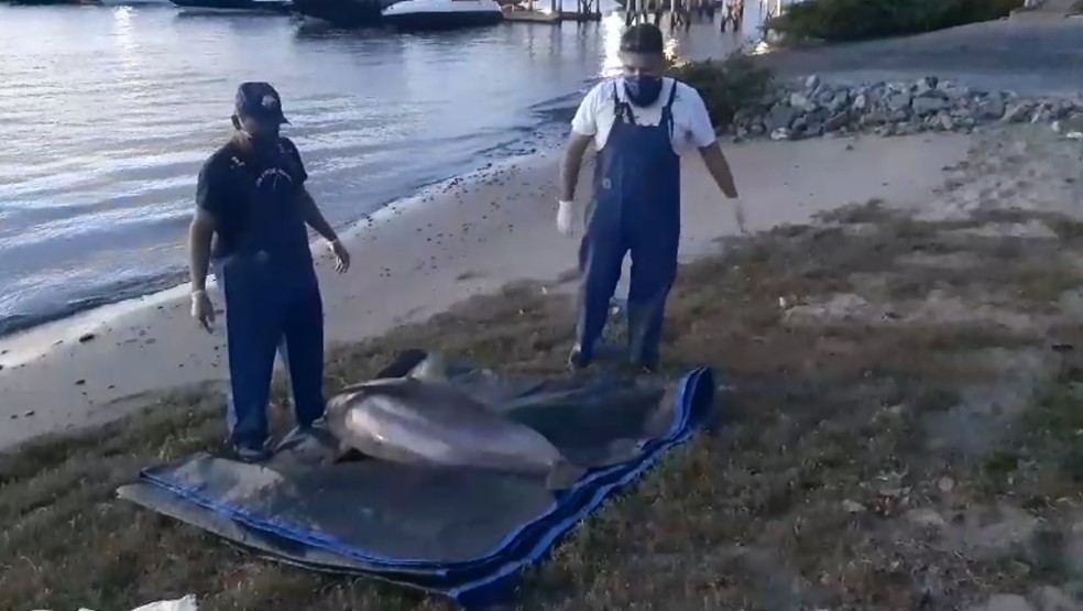 O corpo de um boto-cinza foi descoberto nesta terça-feira (23) na praia de Jacaré, em Cabedelo, na Grande João Pessoa. A causa do óbito do animal será objeto de investigação.
