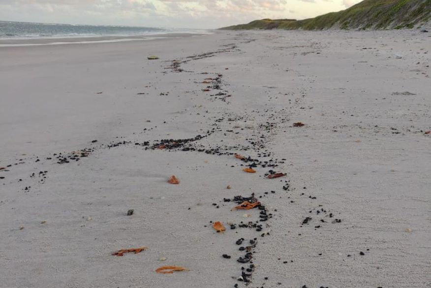 A Marinha foi ao local e coletou o óleo e junto a ele, objetos que provavelmente estavam juntos com o material e foram trazidos pela maré. Possivelmente o óleo é antigo, em razão de estar vindo em forma de ‘bolotas’ como uma massa, o que é menos prejudicial a natureza.